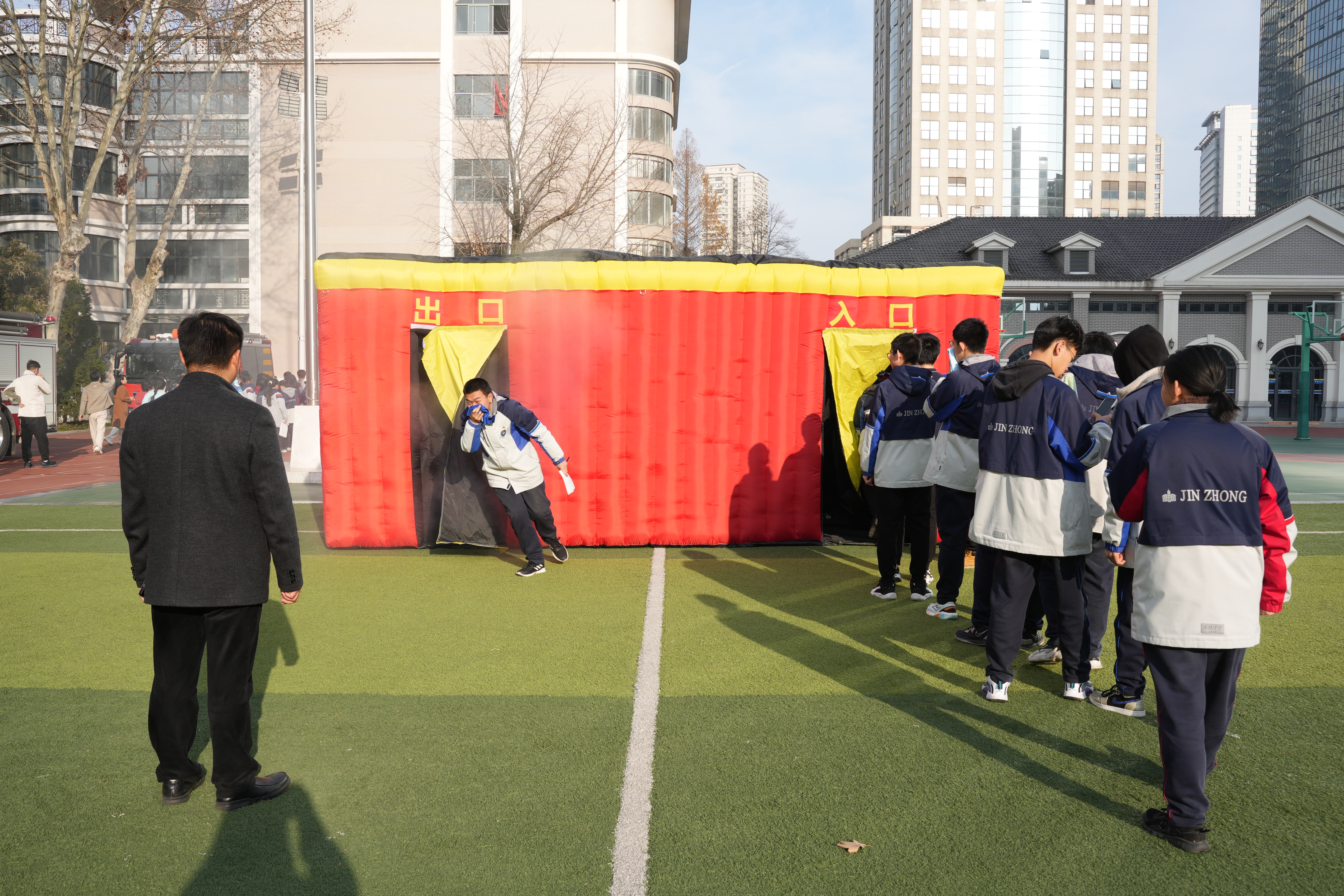 为让学生在火灾、地震等意外来临时,能够快速、有序、高效撤离,熟悉紧急疏散的程序和线路,提升应急自救和救助能力,金陵中学每学期会举行2次安全演练。本次活动以点带面、辐射全员。学校先对从各班各宿舍选拔出的安全委员进行理论学习和技能实操培训,再通过安全委员将相关知识、技能传递给班级的其他同学,扩大了覆盖面、提高了影响力、增加了时效性。以往的安全教育以消防员教学、展示为主,与之不同的是,本次活动注重理论与实际相结合,为同学们提供了实用的现场教学。活动中,所有安全委员都参与了灭火器的实际操作、安全绳的打结系扣,所有参与活动的同学都体验了消防逃生屋并现场观摩消防员的高空速降和高层灭火演练,切实提升了学生的实际操作能力。