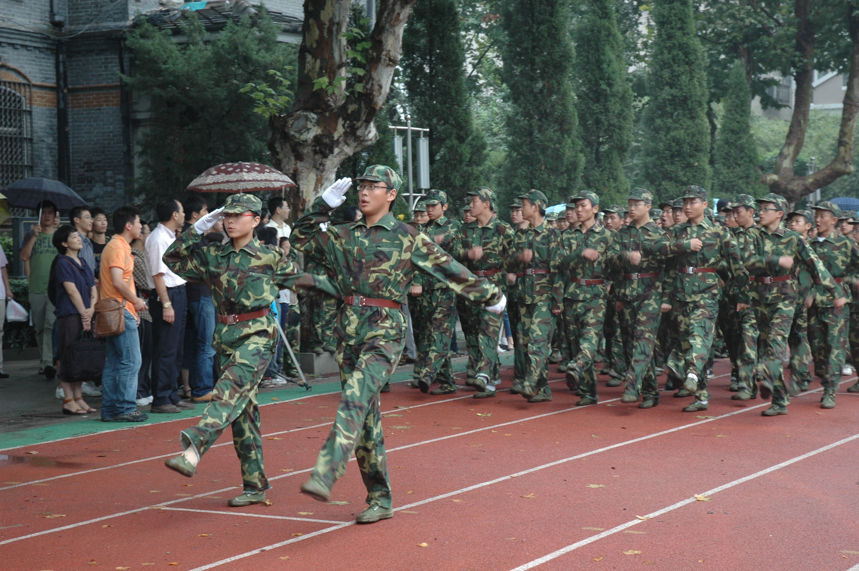 8月30日,是金陵中学新生军训汇报表演暨开学典礼的日子。这天下午,天气阴沉,细雨绵绵。全体新生在学校操场冒雨进行了军训表演 。
