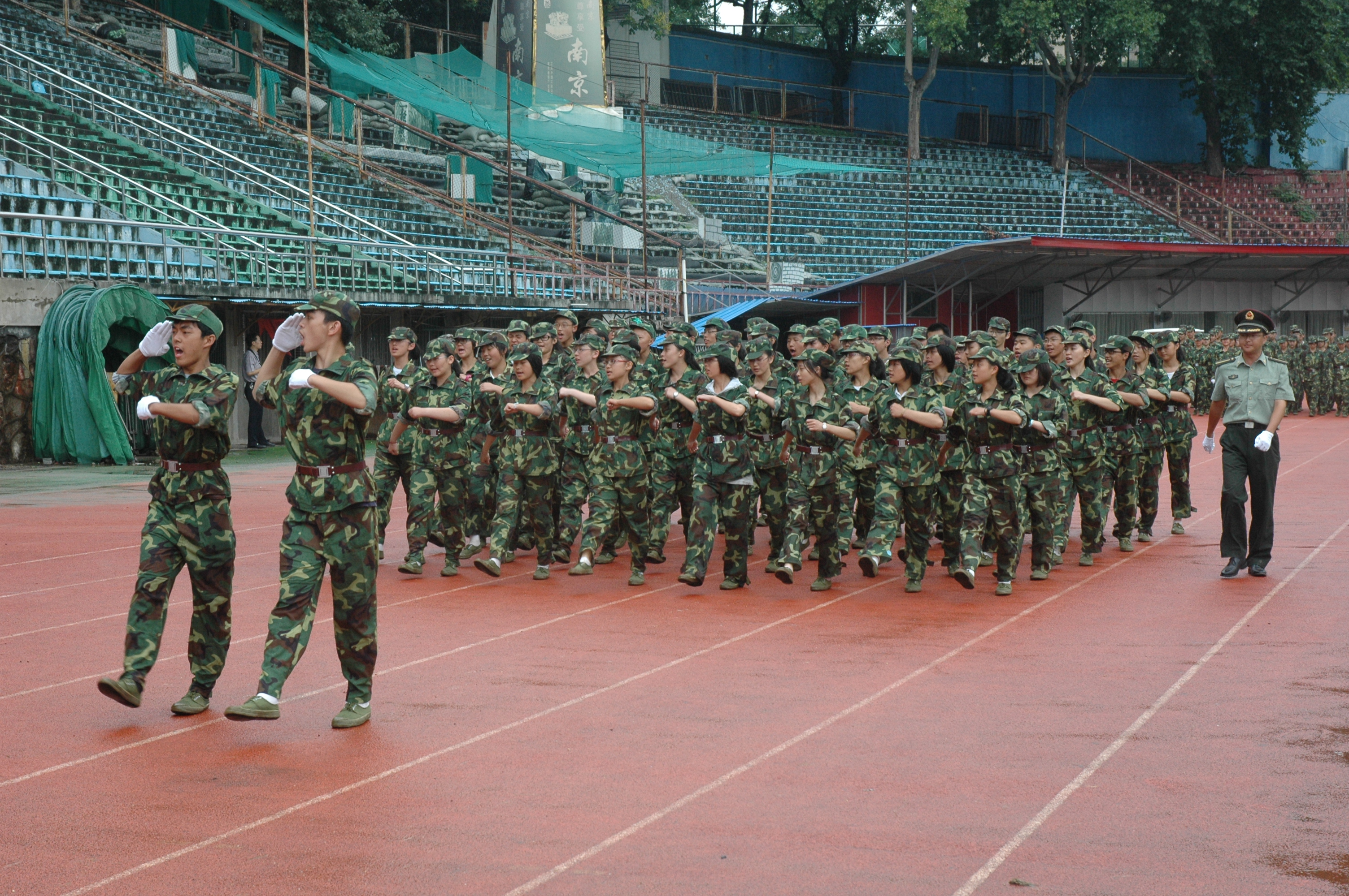 金陵中学高一新生和金陵汇文初一新生在五台山体育场进行了军训汇报表演。初一、高一年级新生