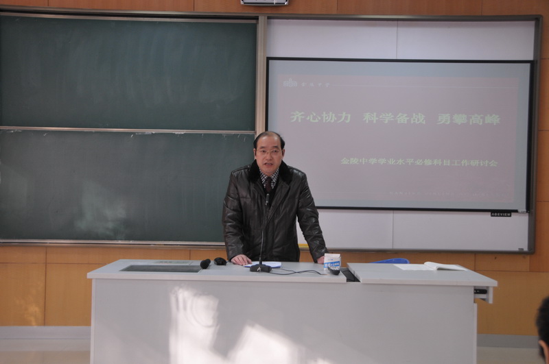 会议最后,孙夕礼校长作了总结发言。孙校长认为本次会议是务实而有内涵的一次人文备考会。他从管理层面出发,提出了早谋划、细落实、找方法、高效率、突重点等行动要点。孙校长结合多年来在教研室工作的经验,以化学学科为例,与老师们分享了各种备考心得,使在场教师从责任意识到具体方法上得到了有效指导。孙校长强调了小高考工作的重要性,要求学校各个部门同心同德,为金陵中学再创佳绩!