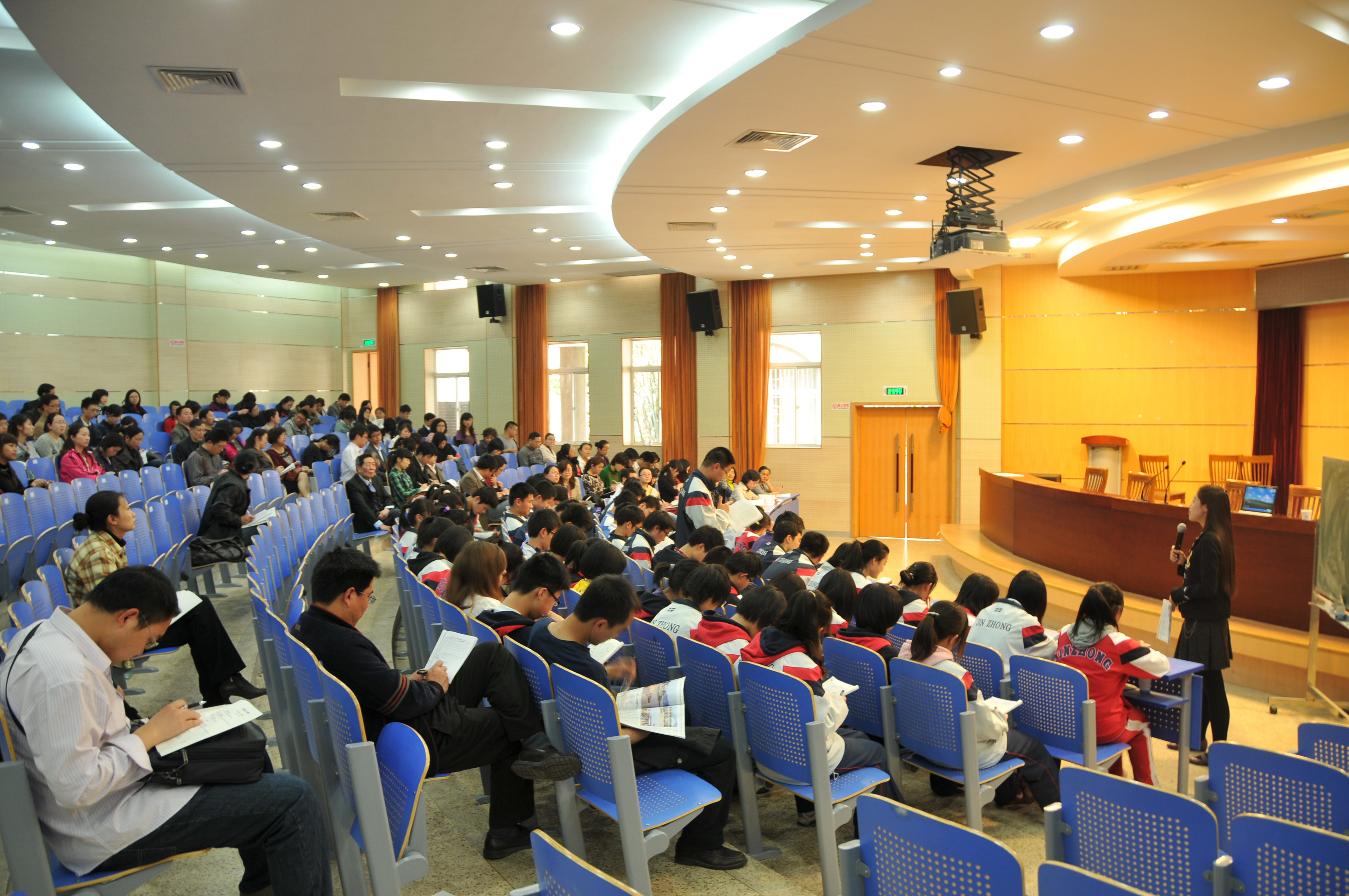 课后,金陵中学语文组组长韩玉洁老师、著名特级教师喻旭初老师、南京市教研室徐晓彬老师对两堂课进行了点评。韩玉洁老师介绍了两位老师的教学设计思路和准备过程,以及金陵中学本学期同课异构教研活动的开展情况。喻老师赞扬两位年轻教师老课文上出了新意,同时希望教师进一步训练学生精练地表达观点,培养学生良好的语文习惯。徐晓彬老师就《鸿门宴》一课谈了语文教学对培养读史习惯和树立人生信仰方面的作用。听课老师都很有收获,活动取得圆满成功。