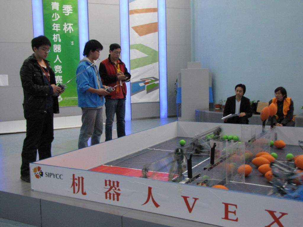 我校队员正在积极调试机器
