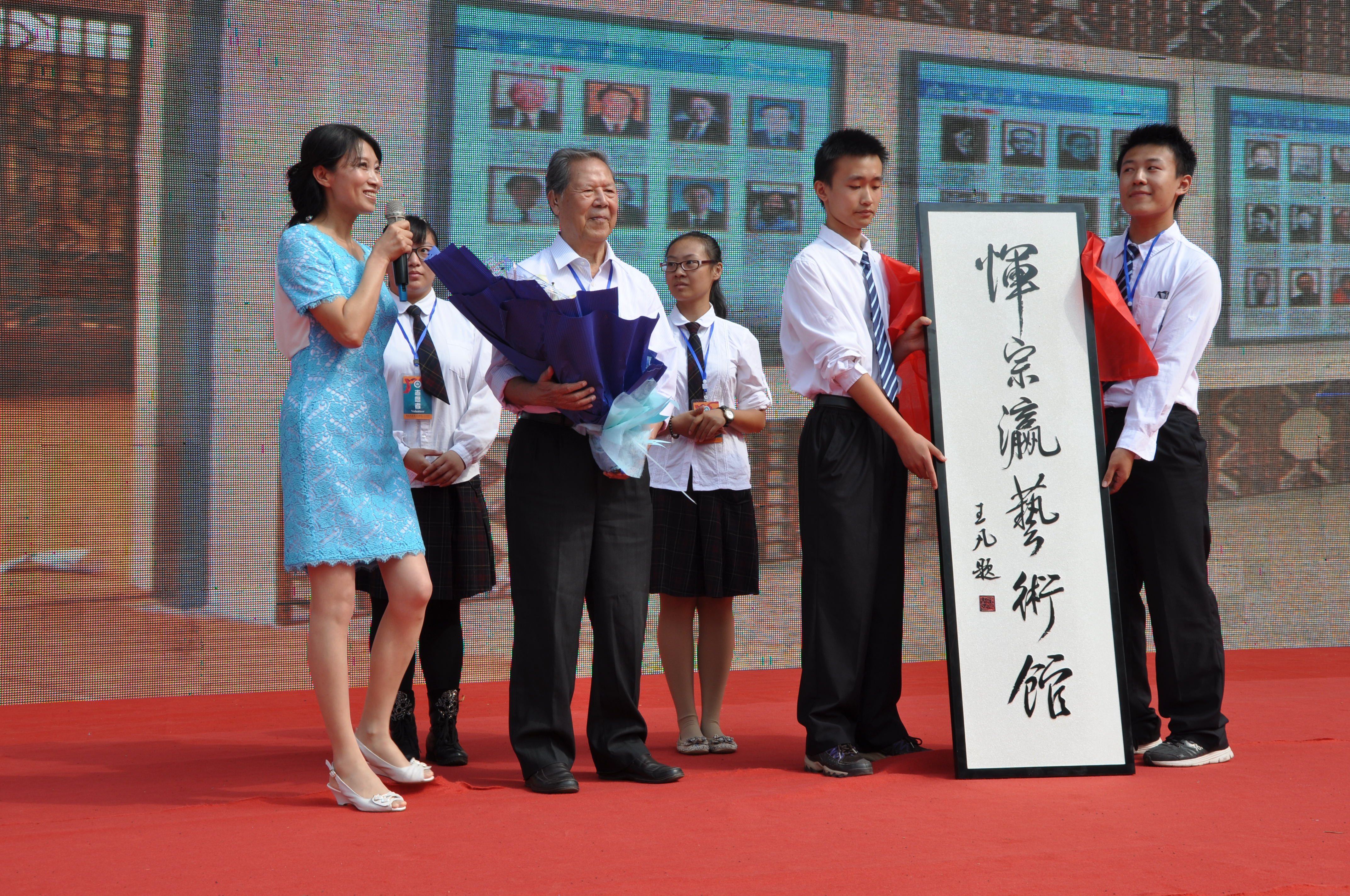 最激动人心的是金陵中学校史馆开馆仪式暨恽宗瀛艺术馆开馆仪式,当92岁高龄的徐悲鸿嫡传弟子,江苏省第一个美术特级教师、南京市基础教育专家恽宗瀛先生出现在台上时,全场响起经久不息的掌声。恽老师既是金陵中学125年薪火相传的见证者、传承者,也是“百年金中,少年精神”的生动诠释。92岁的恽老师在金陵中学从事美术教育32年,他的学生中有诺贝尔文学奖获得者高行健,有南京著名收藏家黄乃海,有南京著名美术特级教师陆长根等。其中恽老师的学生、南京著名画家、67届校友马肇立特将其个人画展定在母校125周年校庆前夕,以向恩师恽宗瀛老师致敬,更表达她感恩母校的深挚情怀。