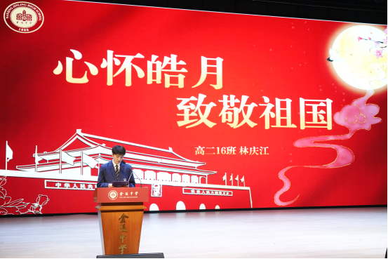 光阴的故事在每一个节日里续写,时间的记忆也因此而丰盈。今年,中秋与国庆的相遇,让“小家”的团圆与“大国”的庆典完美交融,将“天下之本在国,国之本在家”的血脉基因,刻画得格外生动。当朋友圈开始晒出一轮轮圆月,当大街小巷飘扬着最美的“中国红”,我们金中学子所理解的家国情怀,便从宏大的叙事落入了鲜活的日常:它既是爷爷品味月饼时,对往昔岁月的一句动情回忆;也是我们观看国庆新闻时,心中涌起的那份由衷自豪。从“花好月圆人团圆”的小确幸,到“国之繁荣,我之骄傲”的大情怀,这份连接自然而温暖。珍惜这团聚的时光,感受这浓郁的家国氛围,我们便是在生活的烟火气里,汲取着最深沉的文化力量。