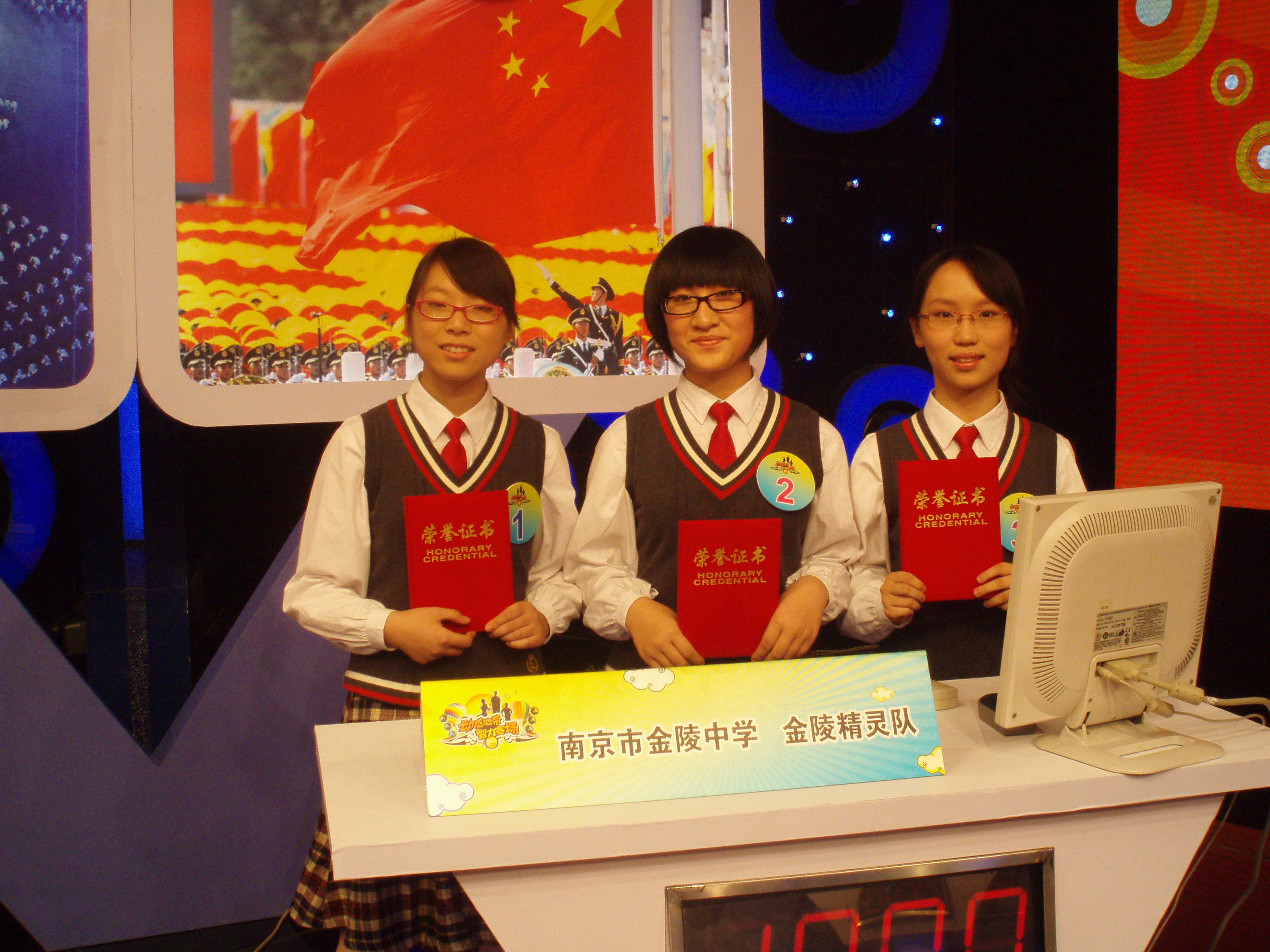2009年10月17日,金陵中学“金陵精灵”代表队在江苏省中学生庆祝中华人民共和国成立60周年知识竞赛南京市预赛中表现优异,荣获季军!