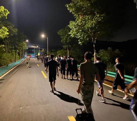 傍晚的五公里远足活动,劳作了一天的同学都发扬了“流血流汗不流泪,掉皮掉肉不掉队”的精神,坚持走完全程。