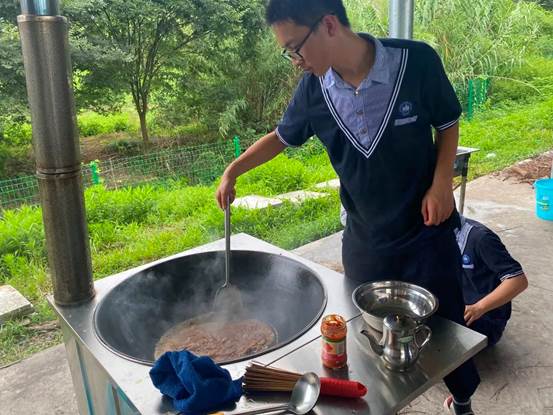 “一家做饭十里香”,烧农家饭的活动把同学们带入一种朴实温暖的烟火气里。自己动手,杀鱼炒菜,柴米油盐,酸甜苦辣,一道道农家菜在同学们的手中诞生。虽不是美味珍馐,但品尝着自己的成果,同学们纷纷表示这是最美味的一餐。