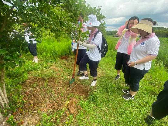 在今天进行的活动中,果树管理令我印象最为深刻。从小生活在城区的我们对给果树施肥的每一个环节都感到新奇,实践的过程也深刻地让我们感受到了什么叫“理想很丰满,现实很骨感”,一个小组六个女生联合起来的力量也不足以让土坑达到标准大小。我们的热情也因此屡屡被不止的汗水和杂草带来的刺痛浇灭,但每当我们想要放弃,都会收获来自老师的鼓励和同学们的帮助。