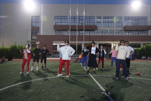 晚间灯光暗淡,篝火纵起,漫天星光点缀大地。草坪上的我们相互依偎,各色歌舞表演获得应援声不断。黑夜里,烟火下,只觉得光速移动的轨迹在实时记录这一天发生的所有美好。抬头仰望点点繁星,像是原班的各位又团聚,又像是新班的我们继续努力,共同走过这青春岁月的身影。光阴很长,岁月很短,祝愿未来的我们永不散场。