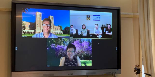 近日,我校孙夕礼校长与加州大学洛杉矶分校(UCLA)副校长Dr. Cindy Fan进行新一轮的合作探讨。通过ZOOM连线,孙夕礼校长、周靖副校长、国际交流合作处邢启华主任与来自UCLA国际研究院的Cindy Fan副校长、UCLA全球课堂项目执行主任Dr. Justin Zackey就全球“新冠”疫情形势下,中美国际课程项目如何进一步保持优质发展以及两校间下个十年的深度合作,进行了深入的交流探讨。