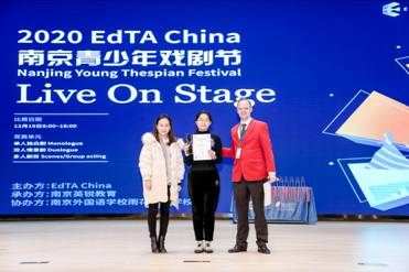 2020年12月19日,EdTAChina南京青少年戏剧节圆满地落下了帷幕。此次戏剧节竞赛单元分为个人项目和团体项目,其中个人项目包括单人独白和双人情景剧,团体项目则是多人剧目。由南京市金陵中学中美班学子组成的小队在大赛中带来了精彩绝伦的视听盛宴,并获得了江苏省冠军、亚军、季军的好成绩。