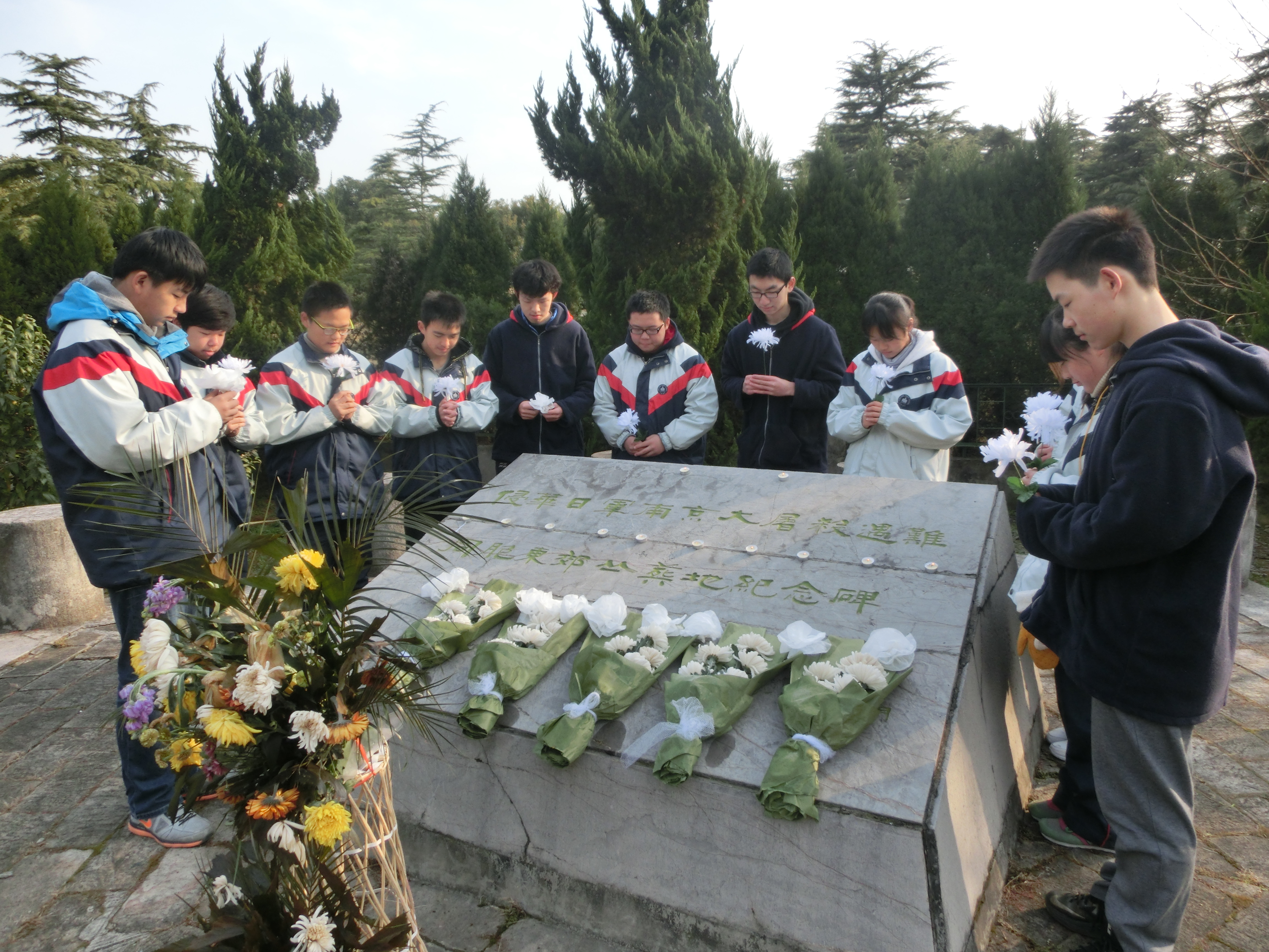 12月6、7日,金中组织“南京大屠杀死难者同胞丛葬地”祭扫活动,1200多师生分组前往23处丛葬地,祭扫大屠杀遇难同胞。