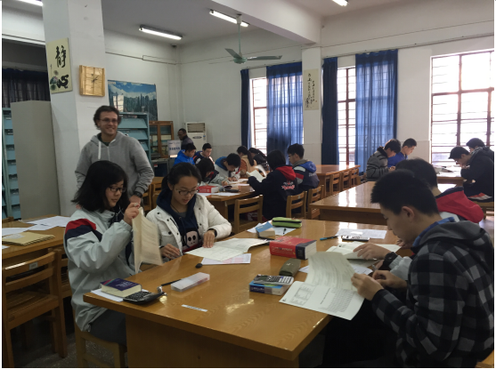 考试时间要求小组在40分钟内完成难度各异的100道单选题,因此对团队合作能力要求很高。考试过程中可以进行小组讨论,在3位外教以及1位中方老师的监考、指导下,比赛顺利完成。