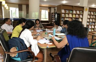 地理组教研活动地点为图书馆二楼阅览室,高一备课组长杨伟大老师、高二备课组长易杨老师、高三备课组长张晓影老师以及地理组的其他老师按时抵达并参与研讨。