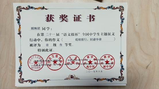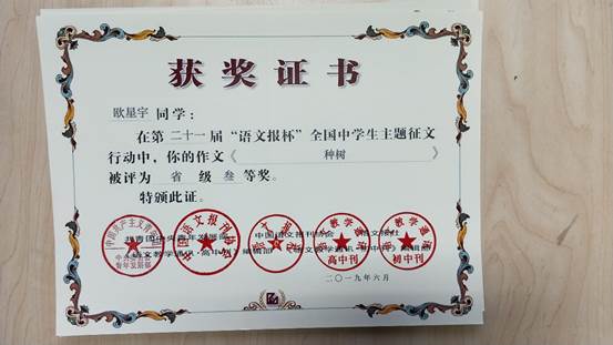 顾琳珺同学、俞洋同学、欧星宇同学、封思羽同学、马婕同学获得省级三等奖。