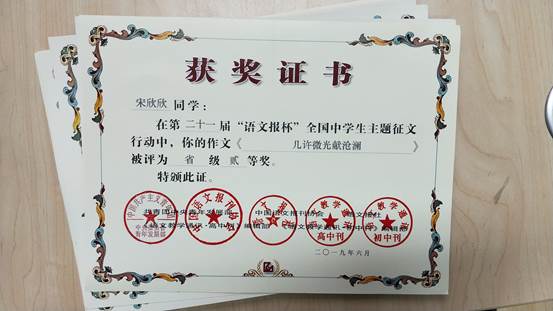 第二十一届“语文报杯全国中学生主题征文行动中我校师生取得优异成绩
