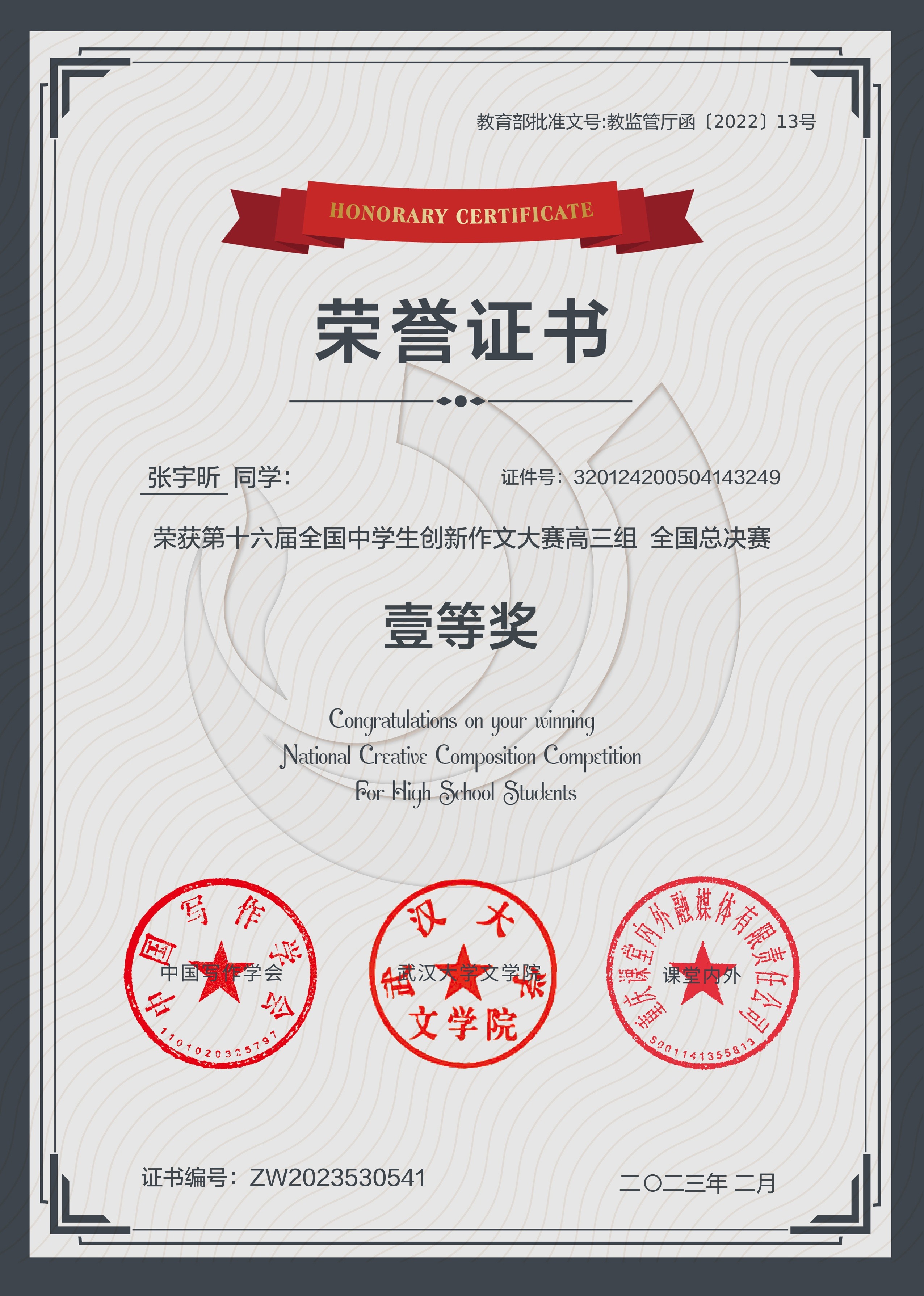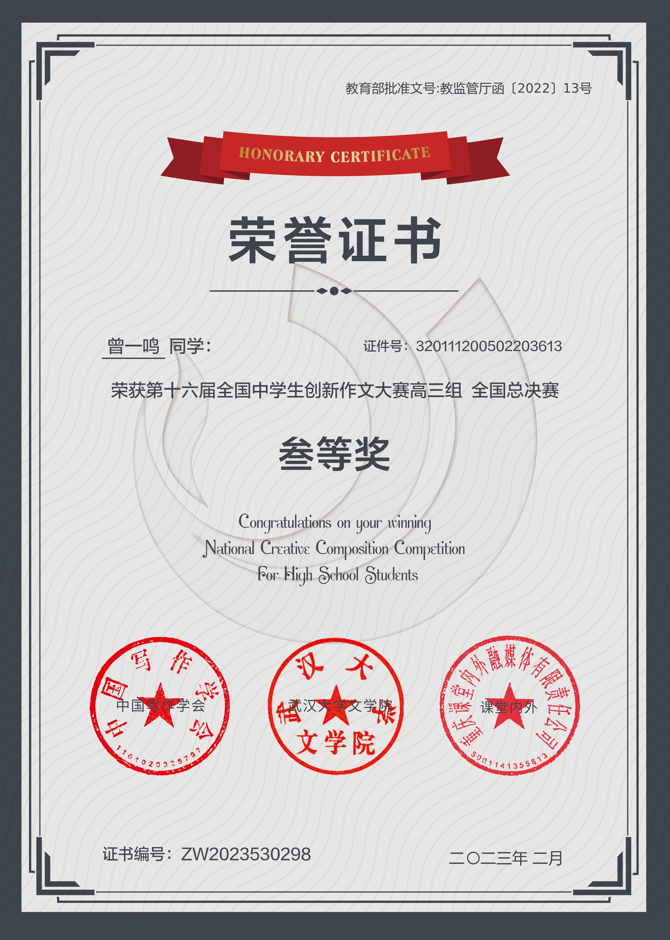 我校高三学子参加全国中学生作文比赛又获佳绩