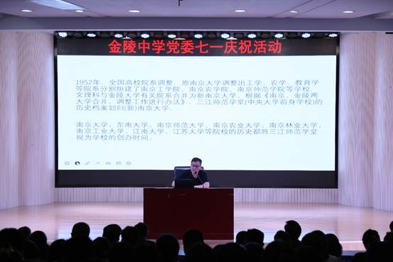 为迎接党的二十大的召开,充分发挥党员先锋模范作用和党组织战斗堡垒作用,6月22日下午,金陵中学党委开展了迎“七一”主题党日活动。活动由校纪委书记赵巧林同志主持。 校党委书记沈方晓同志面向全体党员开设了题
