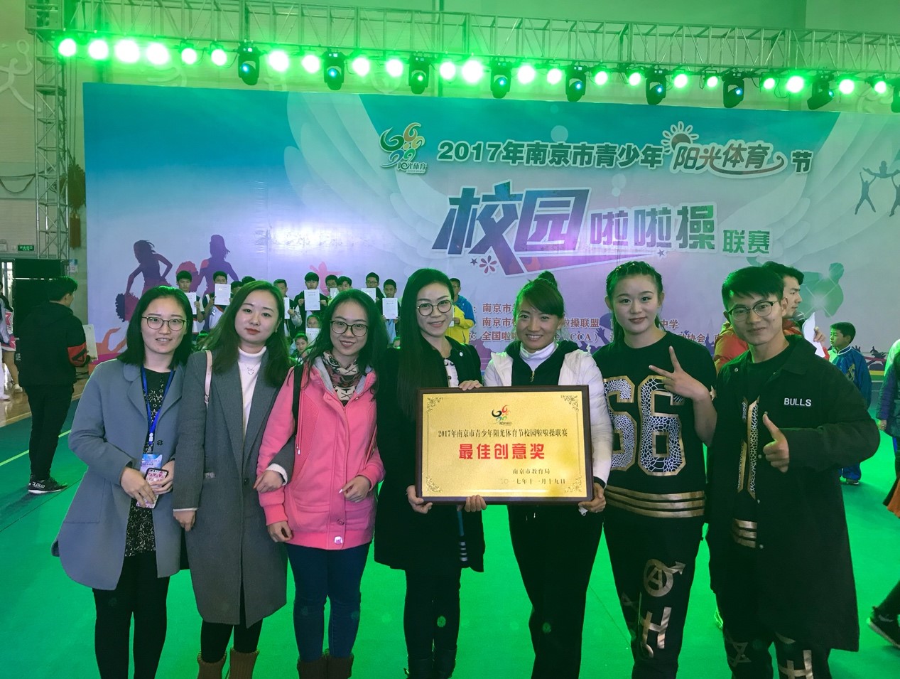 2017年11月18日,在南京市青少年阳光体育节校园啦啦操联赛上,由夏烨、张洪凯两名教师与学生组成的我校啦啦操队以全场最高分夺得冠军,并荣获最佳创意大奖。 两个月来,我校啦啦操校队利用课余时间进行紧张