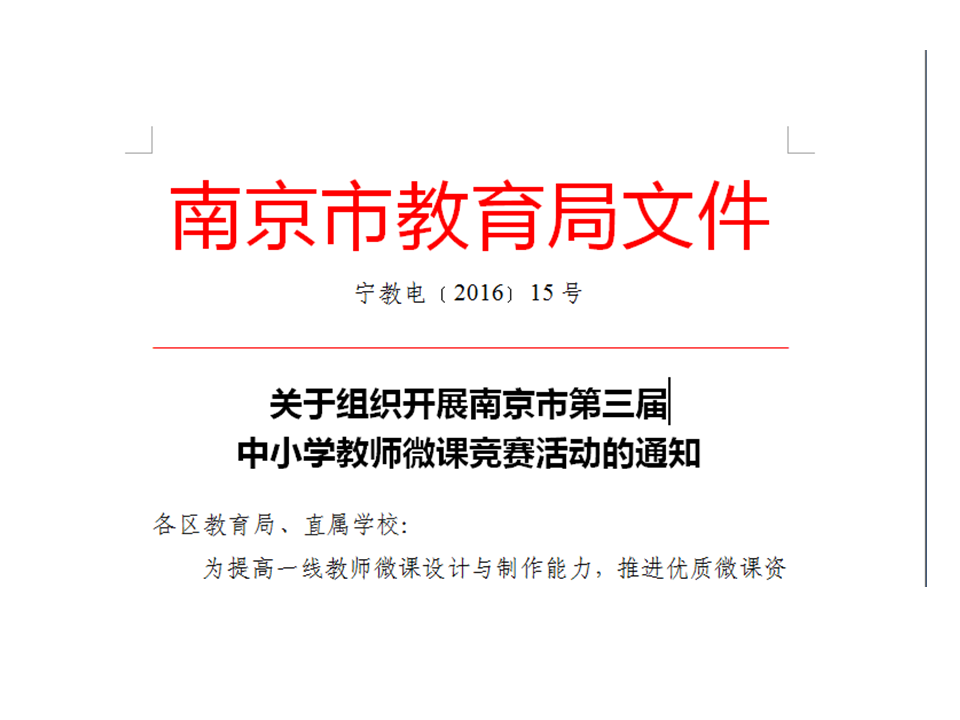 “关于组织开展南京市第三届中小学教师微课竞赛的通知”已经放到群里,请参加的老师自己提交作品,并将参赛资料交一份教科室,视频上传截止时间12月10日。欢迎老师们积极提交作品。 (2016-11-23)关于组织南京