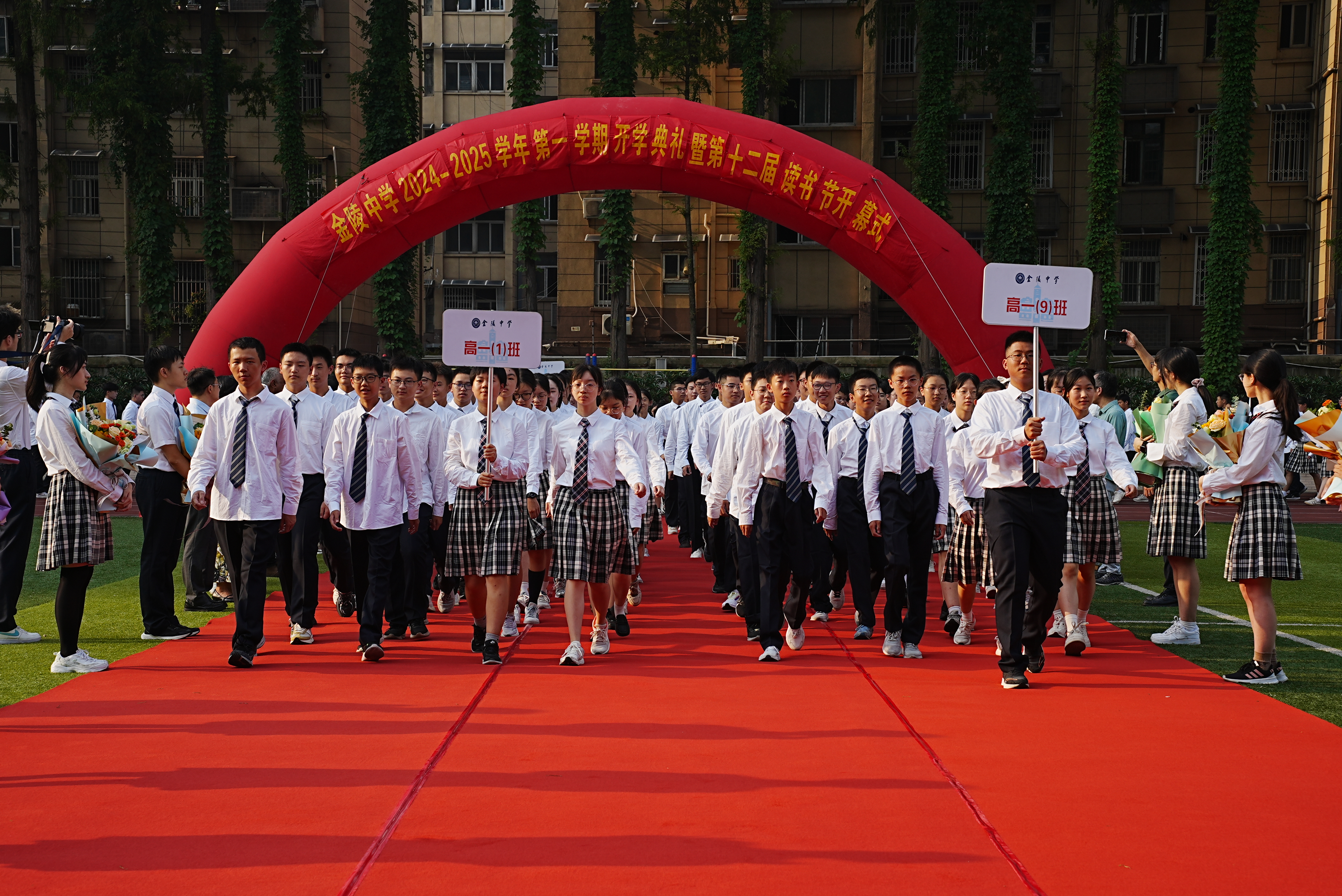 新质教育铸英才,馥郁书香润人生!9月2日上午,南京市金陵中学2024—2025学年第一学期开学典礼暨第十二届读书节开幕式分别在两个校区举行。身着正装踏上红毯,高一“萌新”们怀揣着憧憬与好奇,正式开启为期三年的“