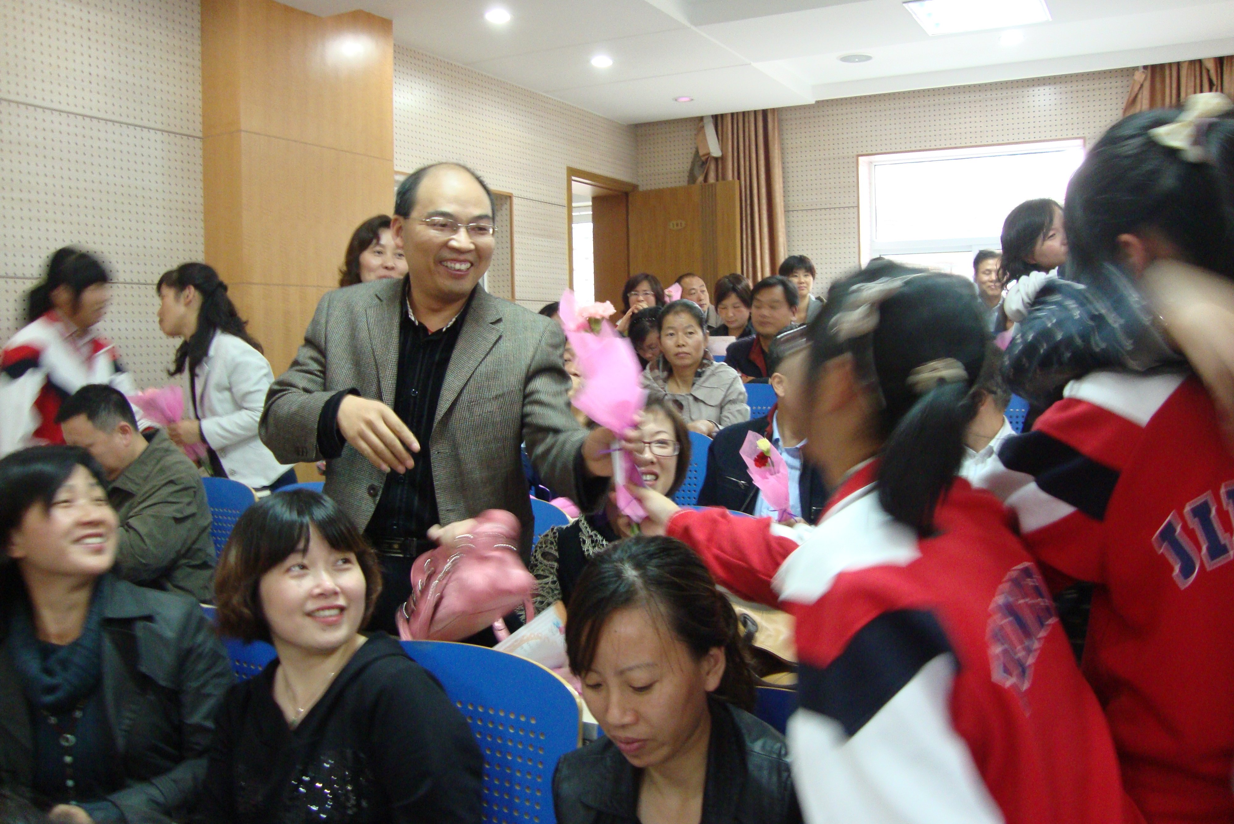 2011年10月20日,金陵中学高一(1)班在科学馆召开了以“因为爱在心中”为主题的公开班会课。此次班会课邀请了全班学生的家长与全体同学一起参加。 整个班会课的流程主要有: 歌曲《因为爱在心中》开场; 同学畅